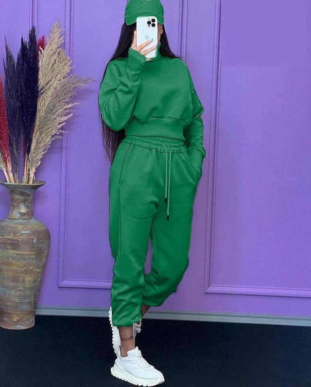 ست سه تکه کلاهدار (کراپ+بادی+شلوار) فرانل اعلا مشکی