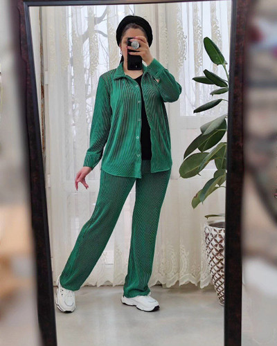 سه تکه شومیز شلوار بگ و نیم تنه پلیسه زیکوناموجود