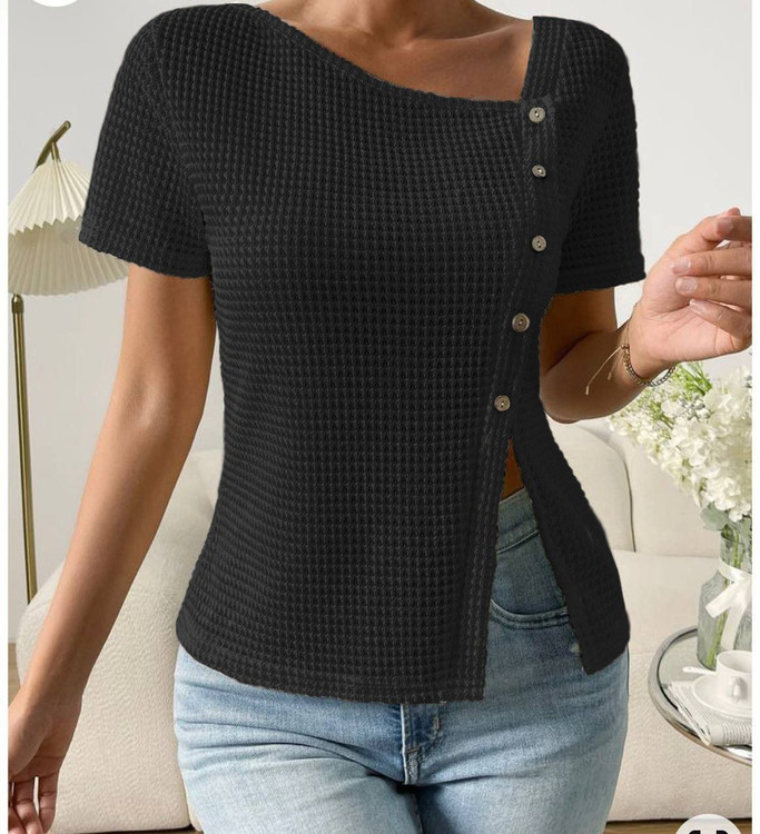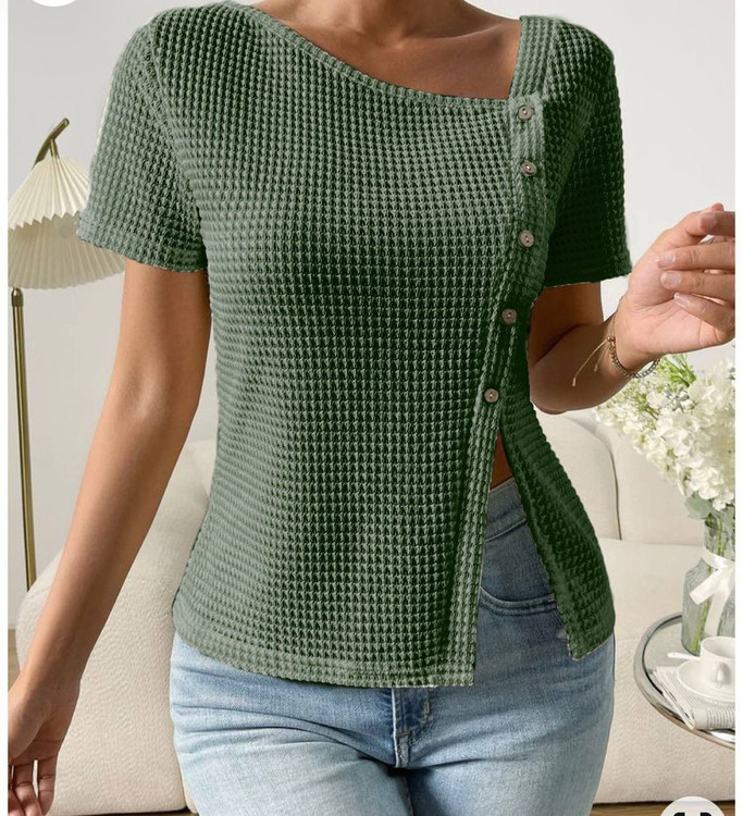 بلوز استین کوتاه بیسکوئیتی دکمه نما فری سایز
