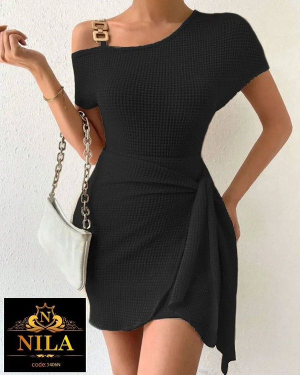 تونیک مجلسی سگک دار مراکشی بیسکوئیتی مشکی فری سایز